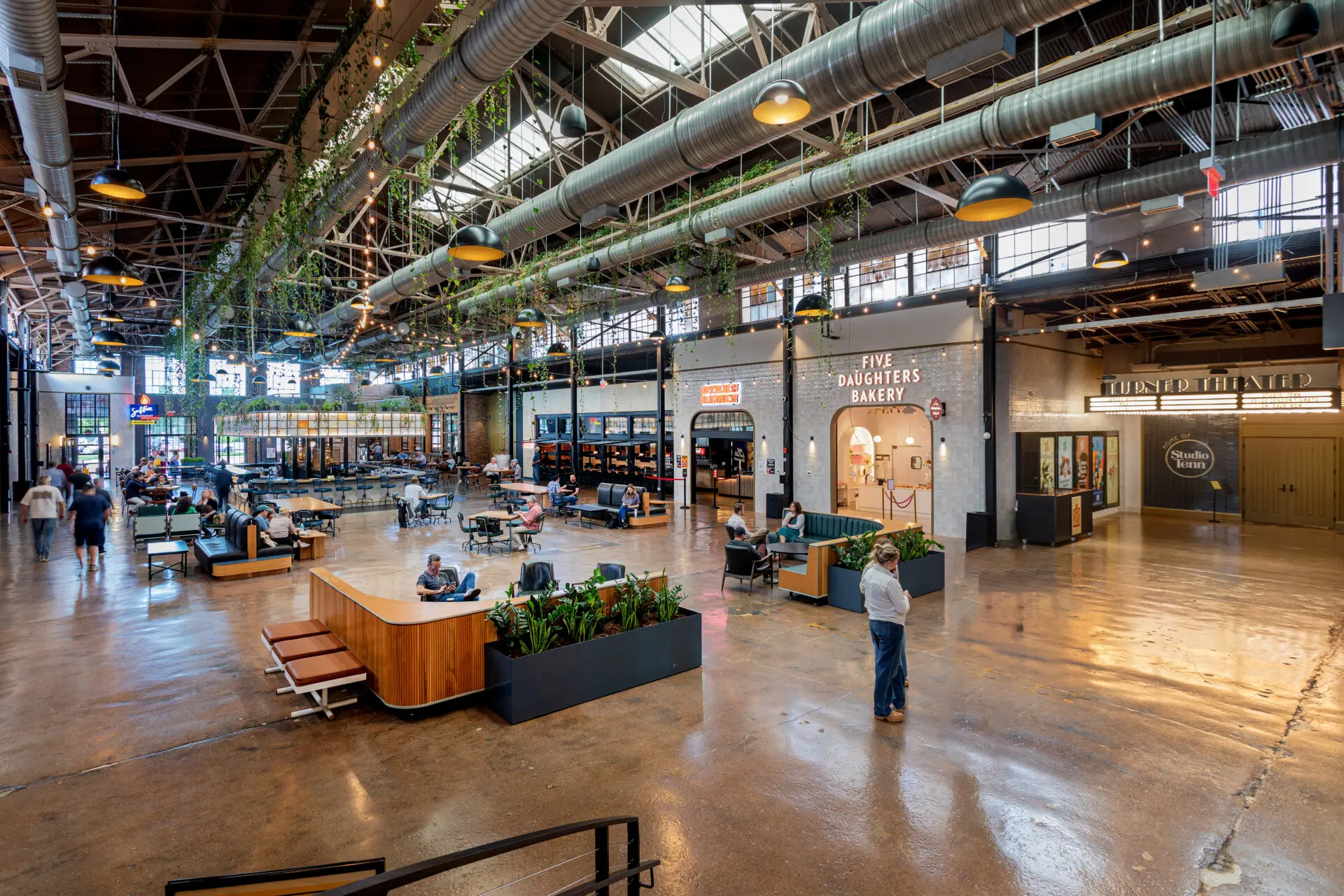 - The Factory Features a Captivating Grand Hall, Skylight Bar, Various Diverse Restaurants, Charming Boutiques and Shops, Park-Like Green Spaces and More